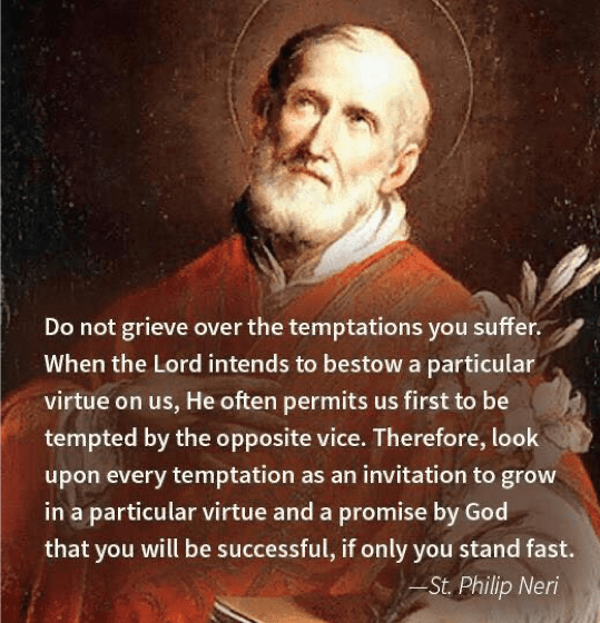 The above quote from St. Philip Neri is also very encouraging; he’s building virtue in you, and “you will be successful if you only stand fast.” So, let’s stand fast and not be discouraged… Jesus will have the last word and his word is victory.