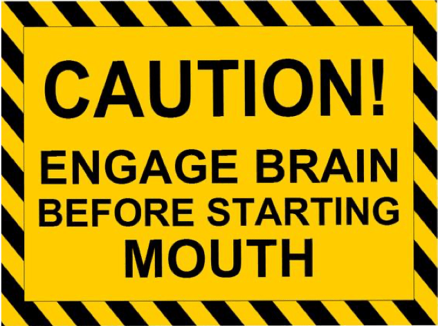 So, the process goes how should I think and next how should I speak or not speak, and what to say. Hmmm, this is starting to “hit home”. It reminds me of several old phrases from “ just keep the big trap shut , to zip the lip buster….. ”