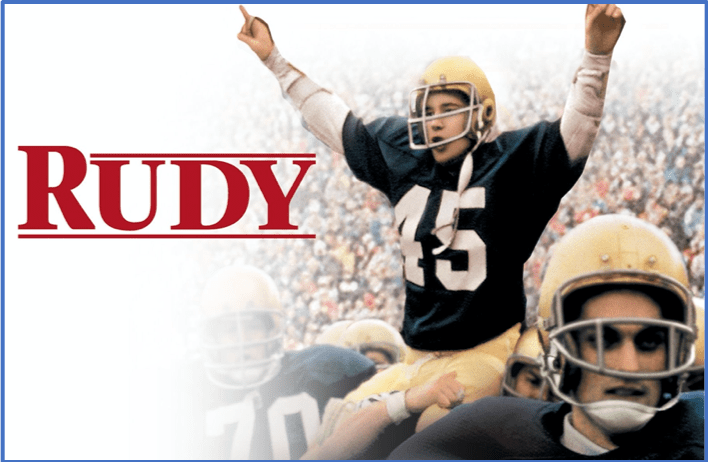 Remember the movie “Rudy” ?  “In the late 1960s Joliet, Illinois, Daniel Eugene “Rudy” Ruettiger dreams of playing football at Notre Dame, but lacks the grades and money to attend, and the talent and physical stature to play major college football. Following high school, he works at a steel mill with his father, a Notre Dame fan, and his older brother. When his supportive best friend Pete is killed in a mill explosion, Rudy decides to follow his dream. Well if you’ve seen the movie, with a little poetic license, it all works out for Rudy. The music is powerful, and at the end everyone is rooting for the underdog Rudy. (oh and Sean Astin, Samwise the Brave from Lord of the Rings, plays Rudy)