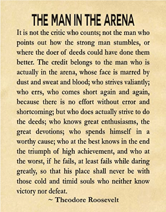 As Teddy Roosevelt said, the key is to “be in the game”. Few of us will win the high awards, but all of us can be in the game…we can all participate…give it our best. I once heard success defines as not what you achieve, but what you achieve compared to what you “could” achieve…. “how did I live up to the gifts and potentials I had been given by God.”