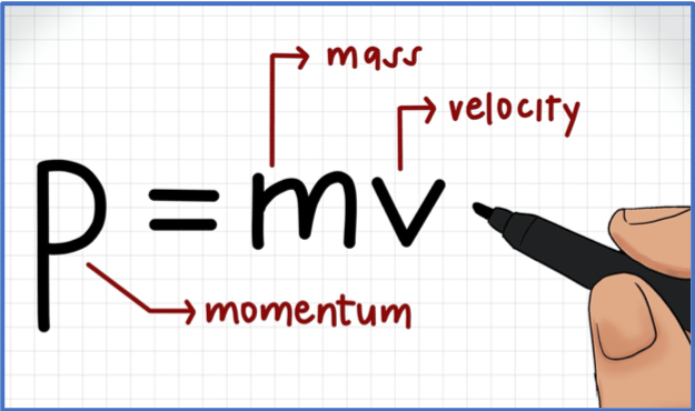 In Physics, momentum is calculated as the mass times the velocity. For example, a bowling ball (large mass) moving very slowly (low velocity) can have the same momentum as a baseball (small mass) that is thrown fast (high velocity). Ever try to stop a train or battleship, even if they are just creeping along … bad idea, don’t try it.
