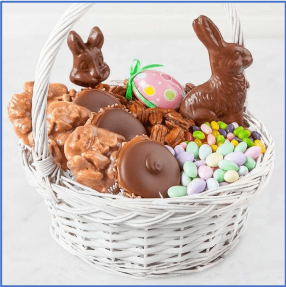 When we got home, we would begin the search for the hidden Easter Baskets.  I would hand out the clues starting with the youngest. “ Don’t let your love for Jesus grow c-o-o-o-l-d” …. hmmmm, where could it be… yes , down on the freezer. Another one was “Sing a joyful noise unto the Lord”…. you got it…by the piano. “Jesus wassssshed your sins away”….. head for the washing machine. One of the classics was, “may your love for Jesus always be hoooootttt”….. let’s see, the stove—no …. the dryer- no…. the oven? YES. As our son David raced to the oven , we heard a cry of anguish….” hey my chocolate is melted”. Yes, the oven had been turned on by mistake and the basket was a big chocolaty mess. I have to say, he handled it pretty well…disappointed, but not distraught. Fortunately we had a large package of Andes Thin Mints which we gave to Dave… he wasn’t thrilled. Since we all felt sorry for him, feeling a bit guilty,  we generously shared our candy with him, so it worked out pretty well. In truth I think Dave “milked” this event for many years…perhaps even until today…. “hey Dave, want one of my chocolate marshmallow eggs?”