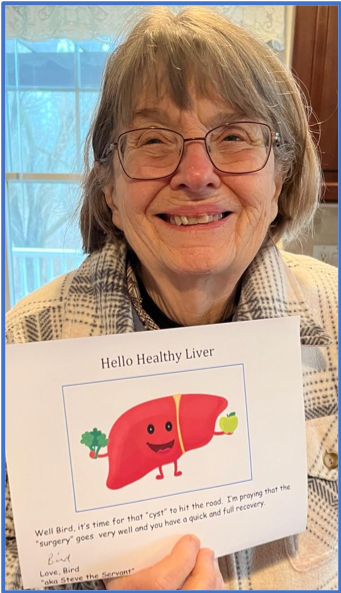 Well we just heard from the doctor….the surgery went well, the cyst is “history”…4 holes in her side from the laparoscopic surgery…. now in recovery. We utter a sigh of relief; even though we were not expecting problems, you never know. We will be able to see her in about an hour.