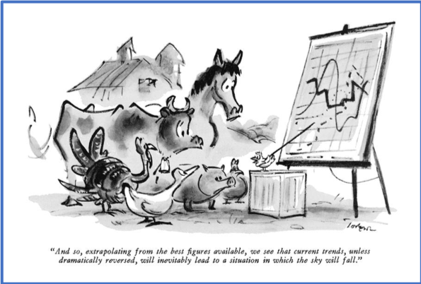 I can be an “extrapolator”. I can tend to take the present moment and extrapolate it into the future. “Well we’ve had sunny weather the last several days, so I think the future is bright…more sunshine and blue skies…. I’m getting out my swimming suit and tennis racket.” It doesn’t end with the weather, it can go to the Giants and Cardinals being in last place for the next 50 years based on last year’s performance. It can even find itself in life itself.
