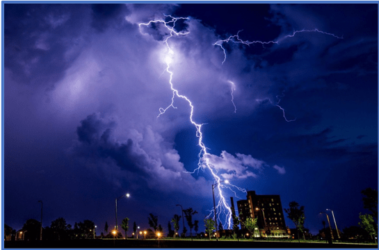 Lightening is very interesting. It is really hot (~50,000 degrees °F …. 5 times the temperature of the sun). It travels very fast (~260 million miles per hour–1/3 the speed of ligh). Thunder that accompanies lightening is like a sonic boom that can be as loud as a gunshot or jet taking off. All in all, a lightening strike can sneak up on you and before you can even think, it has hit…..CRAAAAAAKKKKKK….BOOOOOM.
